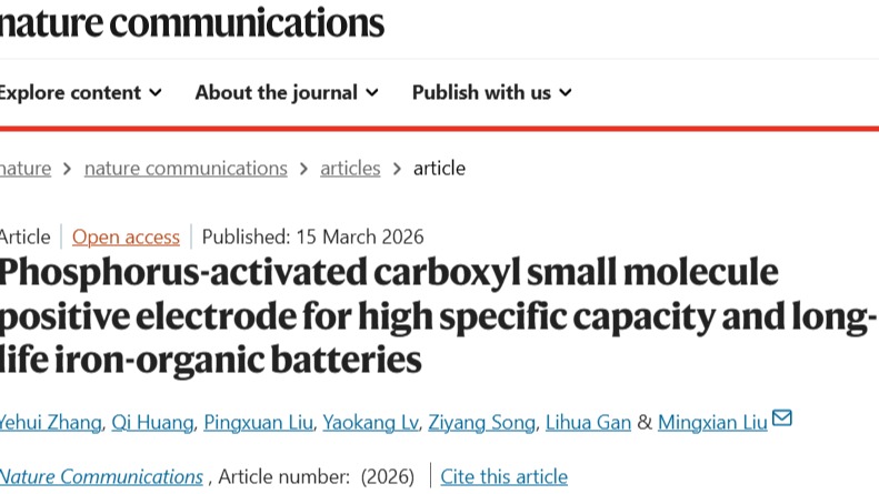 2026.02.26刘明贤教授团队提出磷激活羧基小分子策略设计高性能铁离子电池,研究成果发表于《自然·通讯》