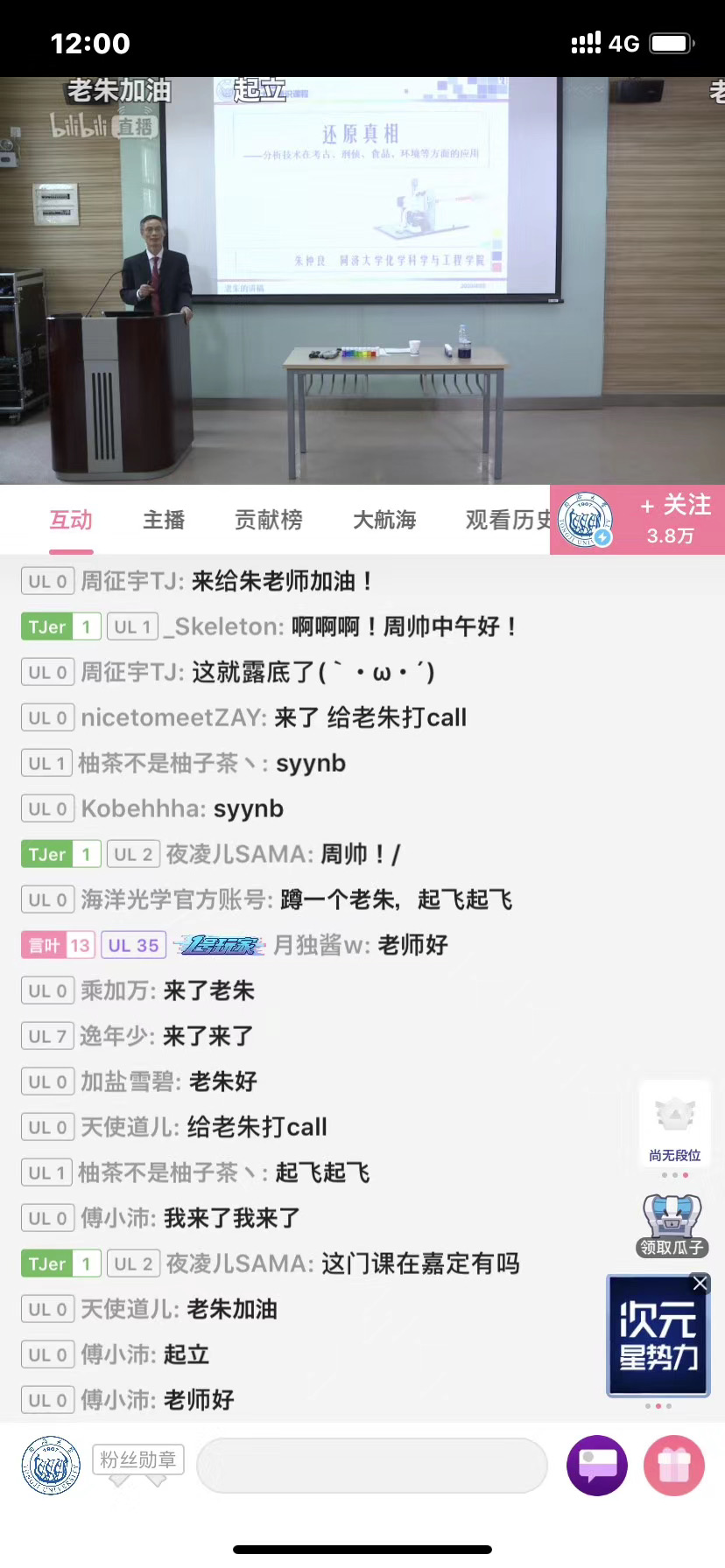 “朱老师讲课真有趣!”下学期一定选这门通识课。”“讲得太通俗易懂了!”……在课程直播过程中,听课学子互动活跃,纷纷为网红教授点赞、叫好。