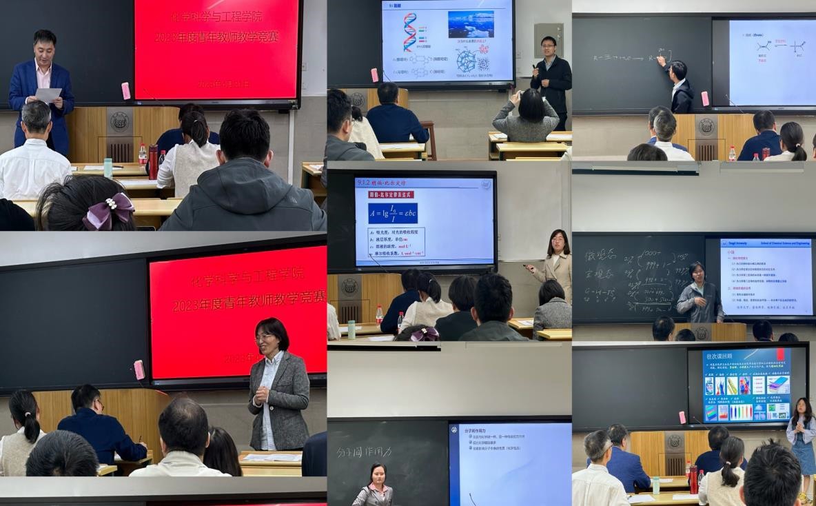 段瑛滢、谷红波、吕甜、韦广丰、吴超、徐涛等六位青年教师参与了本次教学竞赛。竞赛过程中,每位教师分别进行了 20 分钟的课堂教学展示和 5 分钟的现场教学反思。各位参赛教师积极投入,精神饱满,教学演示过程精彩纷呈,充分展示了青年教师良好的精神风貌。