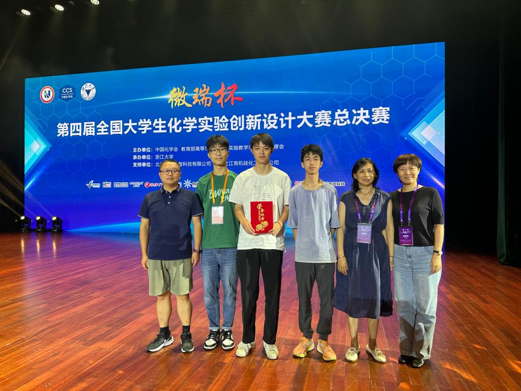 在刚刚结束的 “微瑞杯”第四届全国大学生化学实验创新设计大赛总决赛中,我校yl9193永利集团和国豪书院2020级本科生唐嘉屿、庞继川、肖少华3位同学组成的永利集团代表队荣获一等奖。