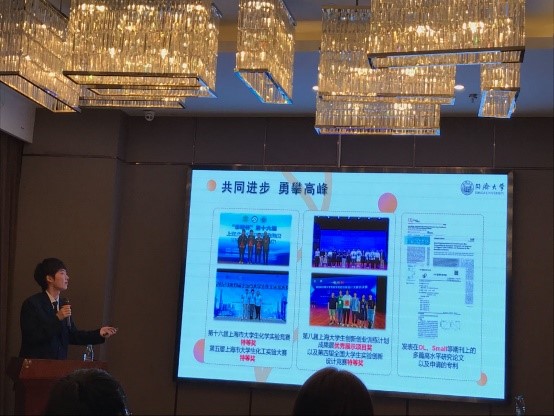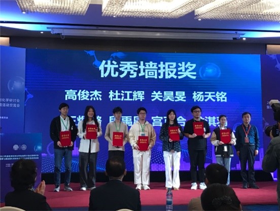 本次大学生科技活动交流会分为口头报告和墙报展讲两部分。来自各高校总计36位优秀本科生各显风采,汇报了本科阶段科研训练经历、项目进展和感想,并与其他与会同学进行了深入的交流。我院2020级拔尖班谭睿皓同学向大会作了题为“以科创为翅膀,促成长助飞翔”的口头报告,并与现场师生进行了深入热烈的讨论与交流,获得大会优秀报告奖。在28日晚的墙报展讲活动中,2020级应化班唐嘉屿同学、拔尖班宫正合、卞佳林同学以及2021级拔尖班王子同学就各自在研究课题过程中的代表性成果制作了精美的墙报,并在墙报沙龙活动中进行展示,和与会师生围绕科研工作积极讨论,交流心得体会,学术气氛浓烈。经过专家评审和现场师生投票,最终宫正合同学获评大会优秀墙报奖。