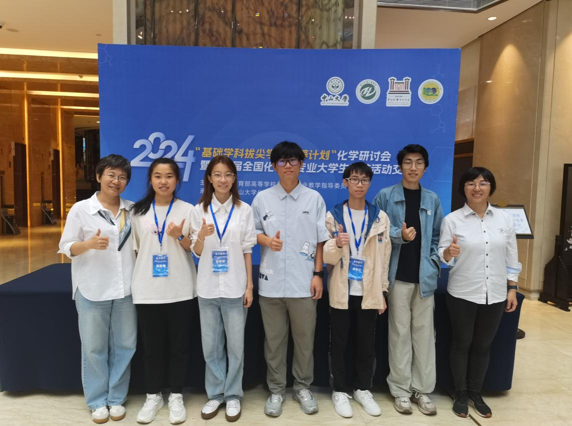 11月15-17日,由教育部高等学校化学类专业教学指导委员会主办、中山大学化学学院承办的“2024年基础学科拔尖学生培养计划化学研讨会暨第八届全国化学类专业大学生科技活动交流会”在广州举行,来自全国30多所重点院校的师生参加了本次交流会。学院副院长刘梅川教授带队,师生一行7人参加了本次活动。我院学子陈思睿、李淼龙分获大会优秀报告奖和优秀墙报奖。