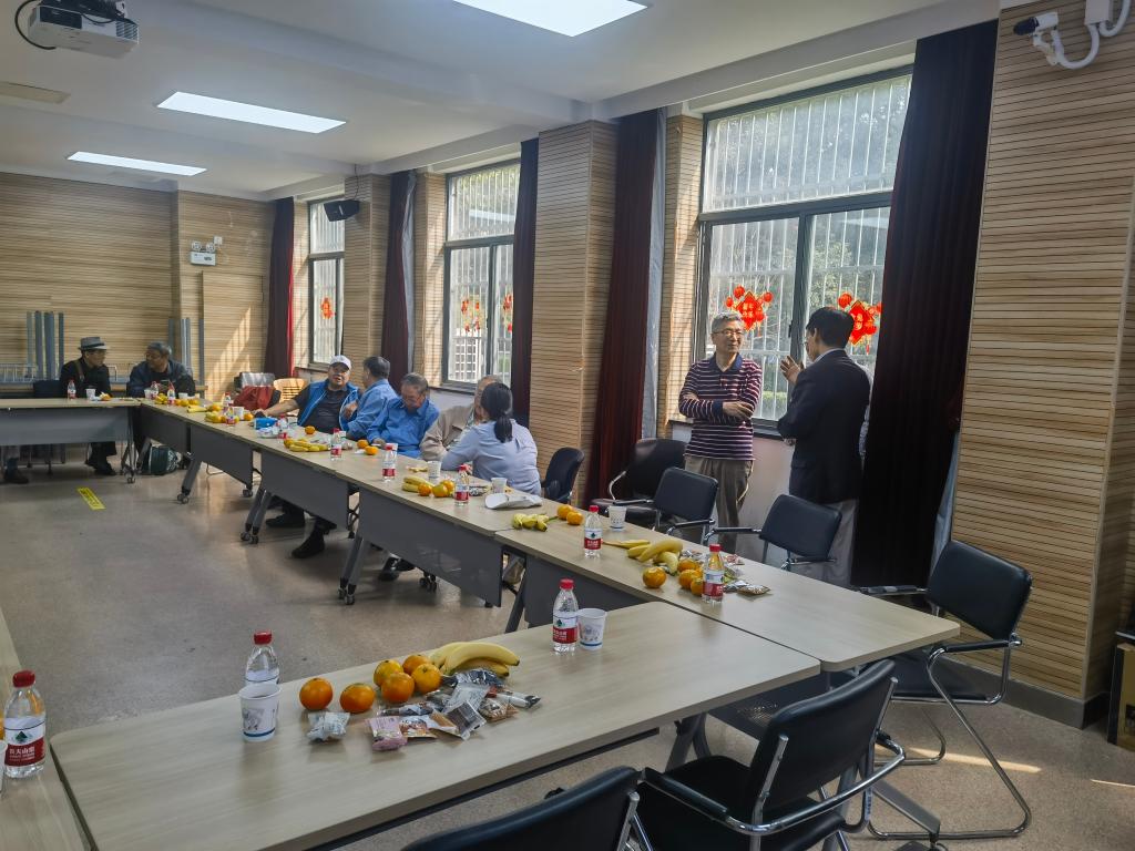退休教师和老领导们认真聆听学院发展情况,频频点头赞许。汇报结束后,部分在职教师也来到现场与老同志们交流座谈,现场气氛热烈、其乐融融。活动结束后,大家共进午餐继续交流。