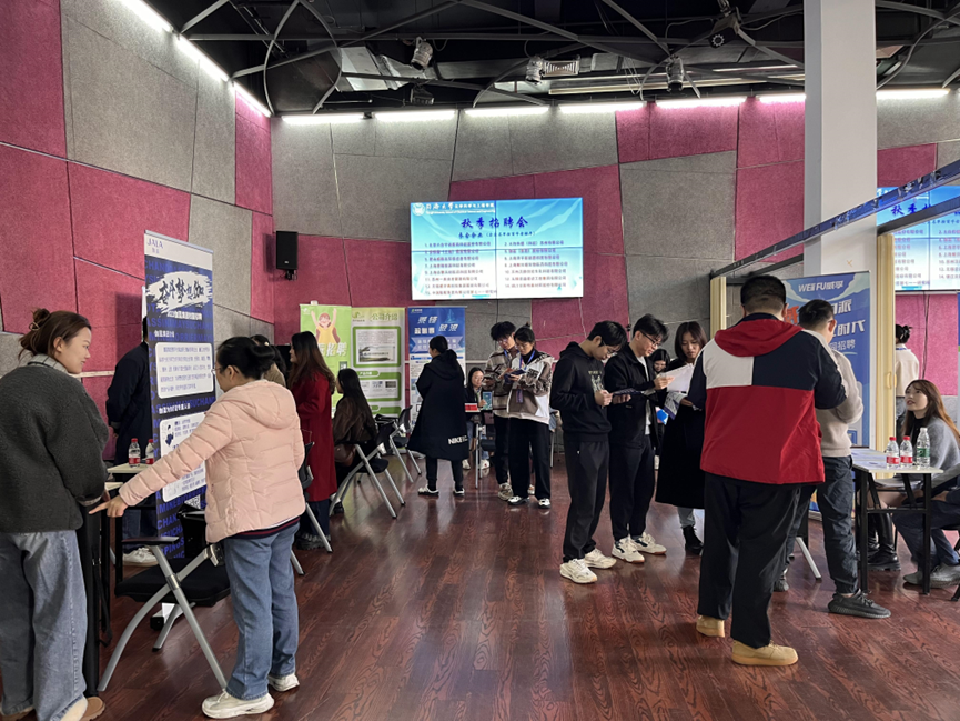 下午13:00开始,招聘单位陆续进入学校,在志愿者的帮助下,各展位布置好海报、易拉宝等宣传资料,万事俱备,只待求职者的到来。下午13:30,招聘会正式开始,众多同学在志愿者的引导下有序入场,参观各个企业展位,询问了解招聘政策以及岗位需求情况,并积极投递简历,与企业进行了深入的交流和互动。同时企业也对我校毕业生的综合素质和专业能力表示了认可,并对部分优秀毕业生发出了面试邀请。此外,一些非毕业班学生也来到招聘会现场,积极参观询问,学习求职经验。