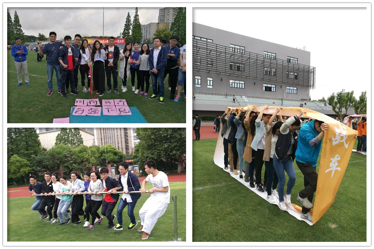 开幕式后,我院学子参加了同心笔、无敌战车、旋风跑、50米迎面接力、跳绳比赛等趣味项目比赛。在“同心笔”游戏中,每人牵拉一根笔上的绳子,团队成员完成书写“同舟共济,自强不息”八个字。在“无敌战车”游戏中,利用专用的帆布履带,团队站在履带当中协作完成前进20米,化学院的同学们以小组第二名的好成绩获得了游戏的胜利。在“旋风跑”游戏中,随着裁判员的一声令下,蓄势待发的我院参赛队员如离弦之箭般冲出,脸上洋溢着笑容,有条不紊地绕道第一个旋转点。到达旋转点后,靠近旋转点远处的同学们整齐有序地往内减速,而后轻松绕过第一道关卡。整个比赛过程干净利落,步伐流畅自然,行云流水。“旋风跑”项目的难点在转弯处,离心力的作用使得外围同学不能过分减速,要求内侧的同学熟练地调整自身速率,由外至内保持速率递减的趋势。这些趣味竞赛增强了同学们团结协作的能力,也展示了我院学子的精气神。