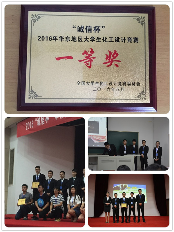 日前,由中国化工学会、中国化工教育协会和教育部高等学校化工类专业教学指导委员会主办、南京林业大学承办的2016年“诚信杯”华东大学生化工设计竞赛暨第十届全国大学生化工设计竞赛华东区选拔赛在南京林业大学圆满落幕。我院2013级化学工程与工艺专业本科生杨世琪(队长)、秦伟、甄子恒、阳琼、徐小江,组建了“沪TJ200092”团队参加此次竞赛。历经4个多月的精心准备,在伍艳辉、李明老师的指导下,该团队通过了初赛选拔、紧张的复赛角逐,闯入全国赛华东地区选拔赛,经过紧张激烈的评审、汇报和答辩,获得了华东赛区一等奖、全国二等奖的好成绩。