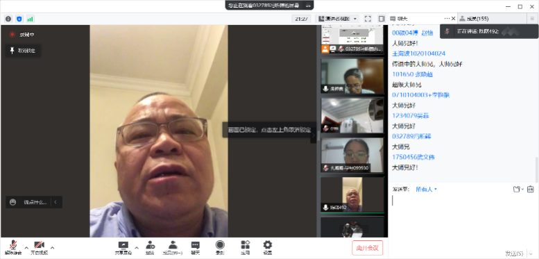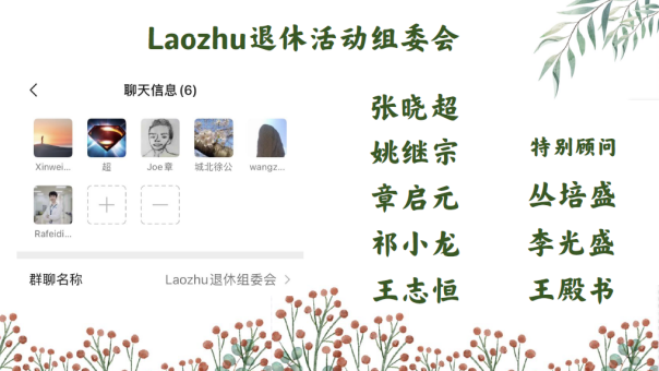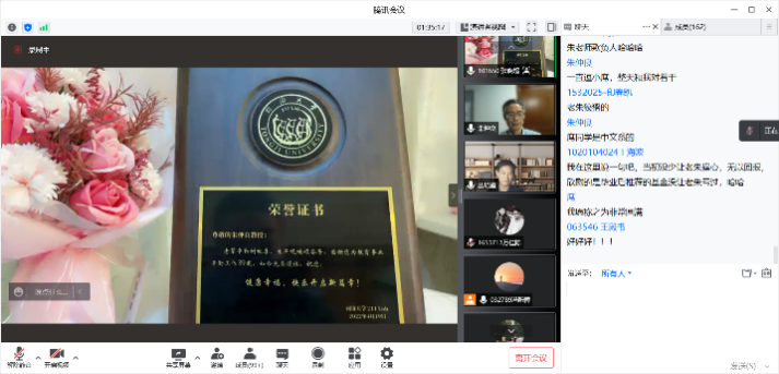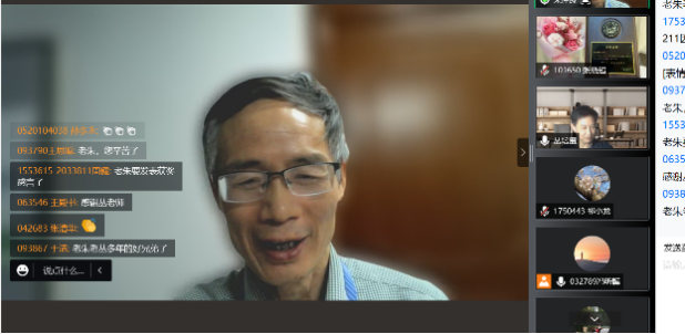 会议伊始,在主持人的引导下,历届校友和同学纷纷入会并寄语老朱,共同祝福老朱荣休。