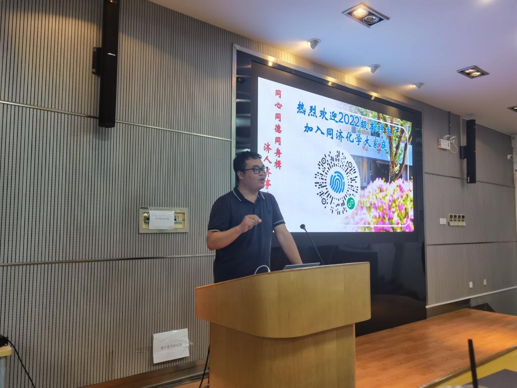 张老师首先代表全院老师,对所有同学的到来表示热烈的欢迎!而后介绍了近年来化学学科发展的情况、同济化学科研平台建设、同济化学科研创新方面的工作情况等,帮助同学们建立对学院、对学科的初认识、增强专业认同感。