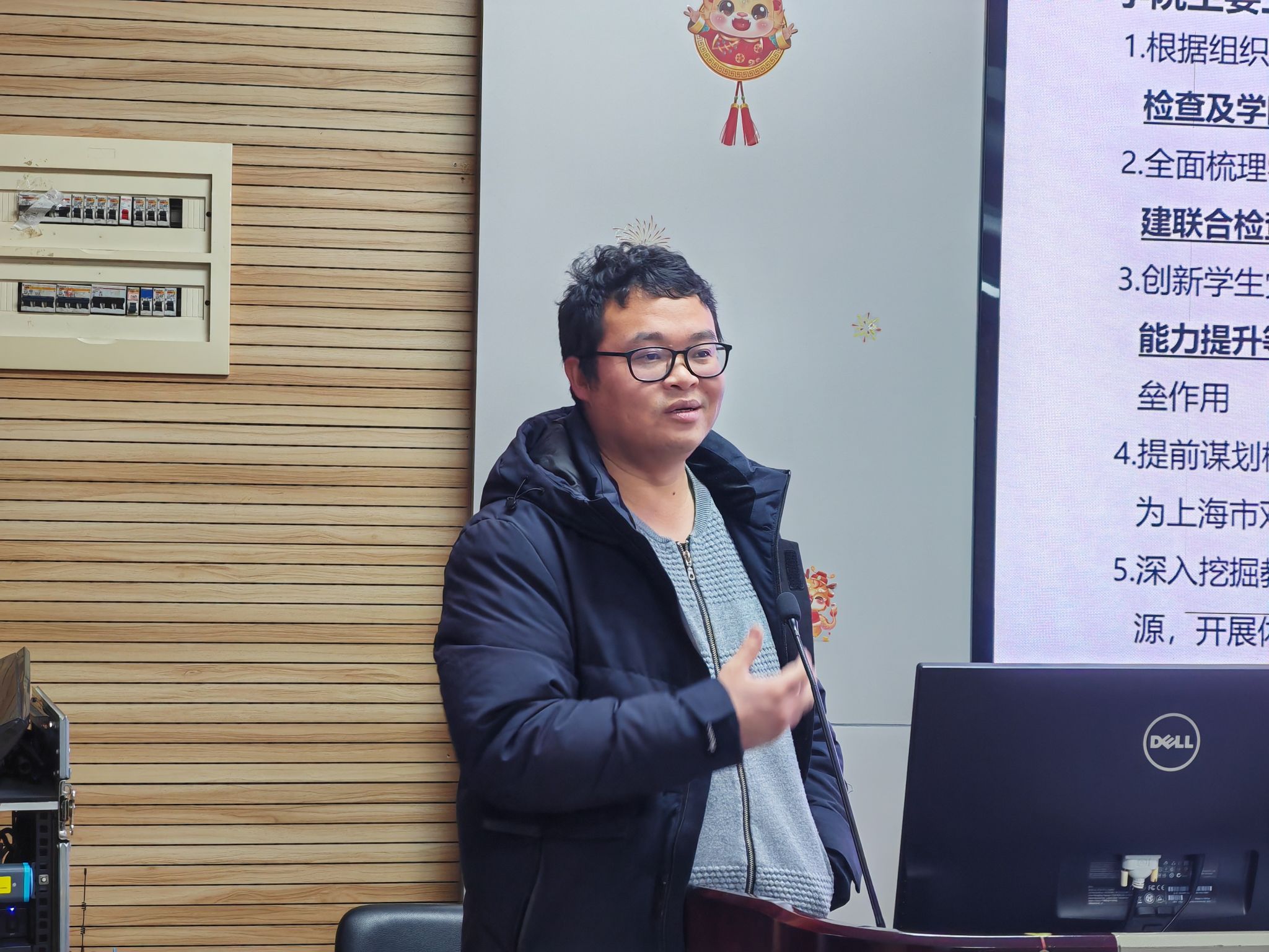 丁老师向各位班主任介绍了目前学院本科生不及格学分分布情况,希望大家日常加强关注、关心,共同帮助同学们解决学业问题。关于就业版块,丁老师介绍了今年学校对毕业去向落实率的要求,解释了今年研究生毕业答辩要求新变化,希望大家共同努力帮助同学们做好毕业季衔接工作,顺利毕业,落实好毕业去向。