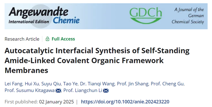 Li Liangchun's Research Team|Angew.Chem.Int.Ed.:Autocatalytic Interfacial Synthesis of Self-Standing Amide-Linked Covalent Organic Framework Membranes
