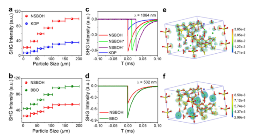 Deep-ultraviolet (λ<200 nm) second-order nonlinear optical crystal is a key component for the all-solid-state laser to output deep ultraviolet laser, playing an irreplaceable role in optical communication, medical diagnosis & treatment, deep space exploration, and military technology.Currently, only the KBe2BO3F2(KBBF) crystal invented by Chinese scientists can directly output deep ultraviolet laser at a doubled frequency in practical application. However, it is difficult to obtain large-sized KBBF crystals due to their lamellar growth feature. In addition, raw materials for synthesizing KBBF crystals require highly toxic beryllium oxide, greatly restricting the commercialization and application of KBBF crystals. Therefore, it remains a challenging problem to explore the design and synthesis of deep ultraviolet oxide crystals with high deep ultraviolet transparency, large SHG response, and sufficient birefringence.