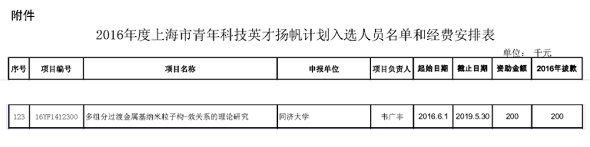 日前,上海市科学技术委员会正式公示了2016年上海市青年科技英才扬帆计划拟资助人员名单,本年度共遴选出160人拟予资助,永利集团6人入选(此外,永利集团附属医院4人入选),其中我系助理教授韦广丰名列其中。
