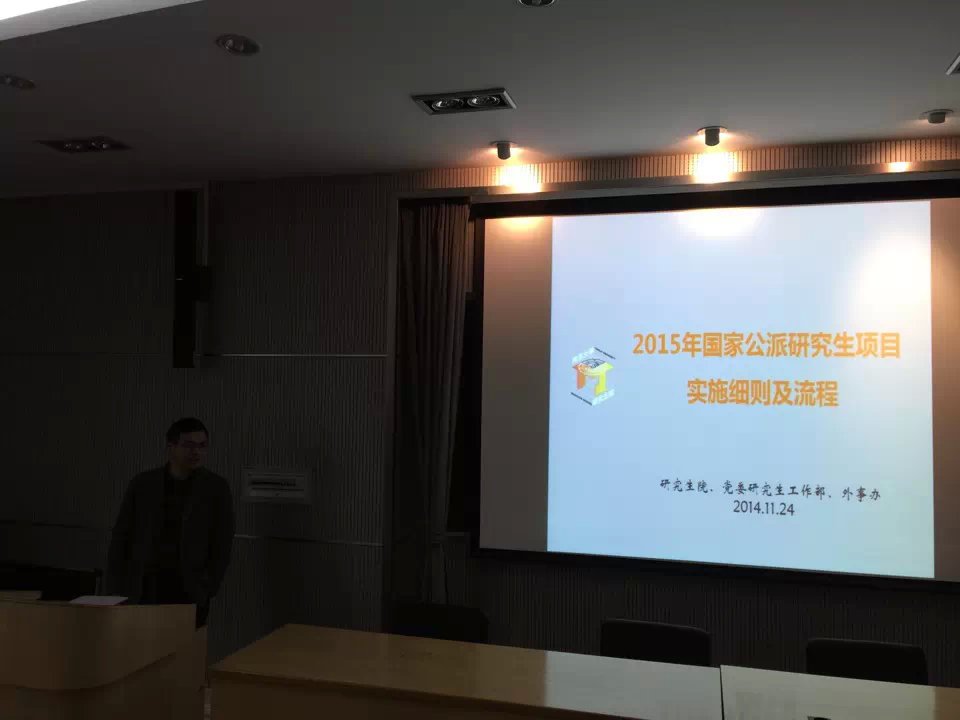研究生院培养处国际交流科王芳老师详尽地传达了国家留学基金委关于国家公派研究生项目选派的工作精神,并就该项目的选派对象、选派类别、选派方法、资助办法等做了详尽的介绍和说明。同时,王方老师介绍了永利集团国际会议或短期出国访学申请和资助办法,使同学们充分了解了我校在研究生国际交流方面的优厚政策。