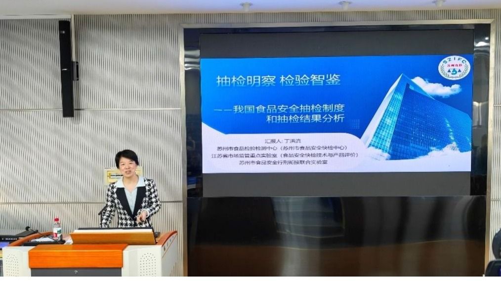 讲座上半场,苏州市食品检验检测中心副主任丁洪流博士系统解读了我国食品安全抽检制度。她介绍了涵盖监督抽检、风险监测和评价性抽检的立体化监管体系,指出当前我国食品抽检合格率持续保持高水平。报告重点分析了农产品等重点领域的潜在风险,如农药残留与微生物污染,并通过典型案例阐释了检测技术在发现食用油掺假、非法添加等问题中的重要作用。丁博士还展望了高分辨质谱等前沿分析手段在食品安全领域的应用趋势,强调了标准体系建设对保障食品安全的基础性意义。