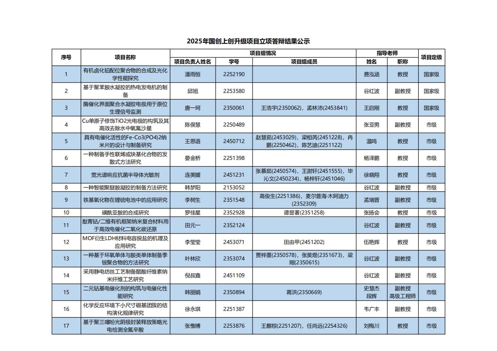 2025年国创上创升级项目立项答辩结果公示