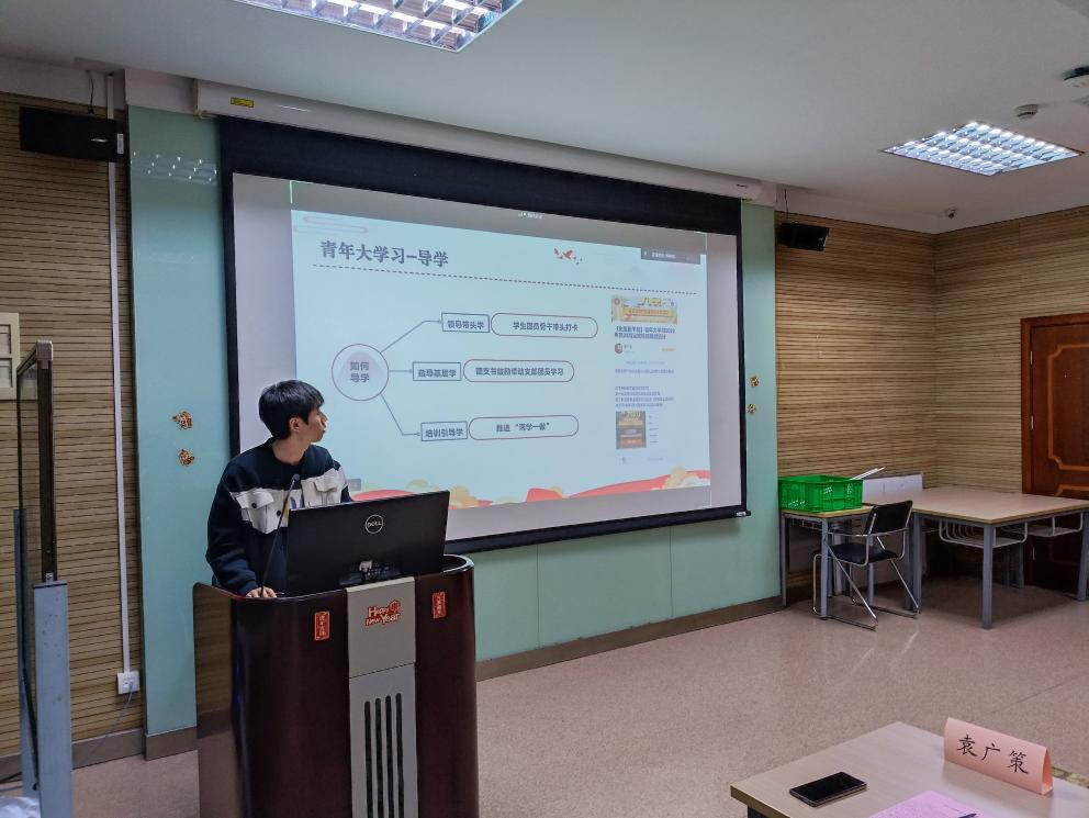 接下来是“团务能力培训板块”学院分团委副书记热依拉老师、2021级硕士研究生第一团支部书记王正明、学生兼职团委副书记林伟宁和袁广策依次从团支书的身份与义务、团支部工作手册撰写、智慧团建的录入、团推优及青年大学习对团支书的各项工作进行了详实全面的培训,尤其细化了工作内容,明确了时间节点。