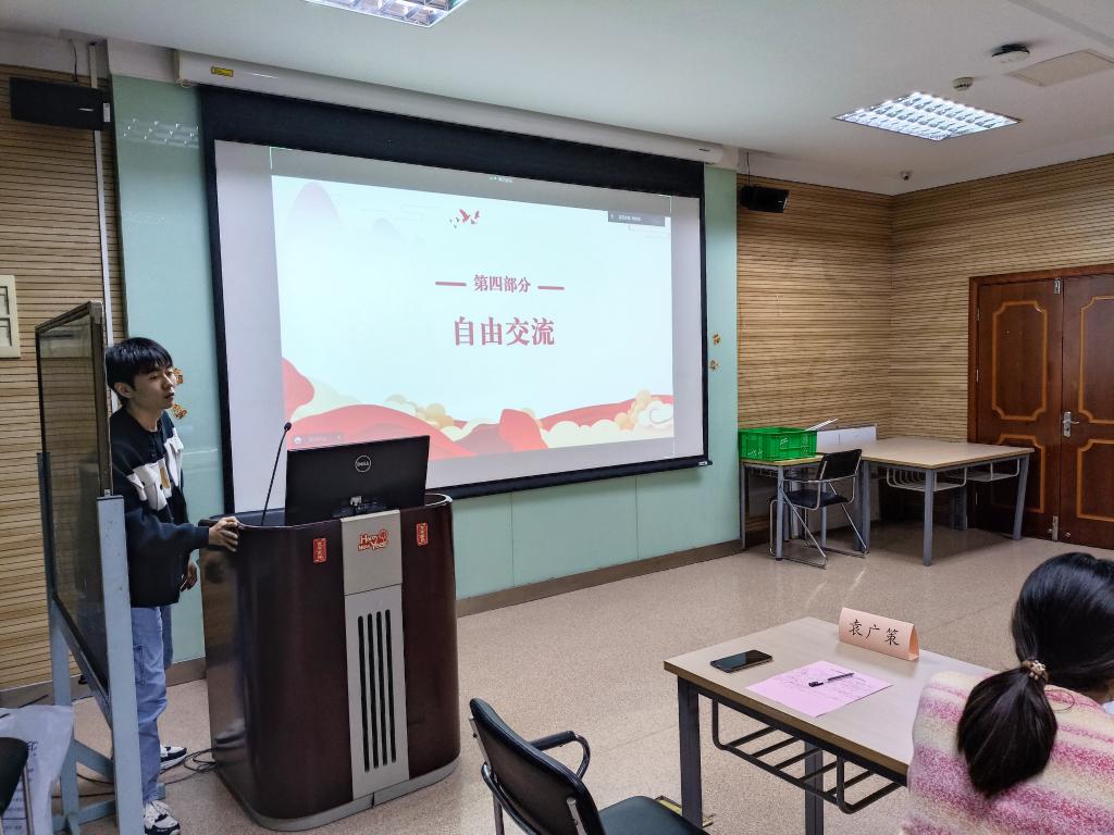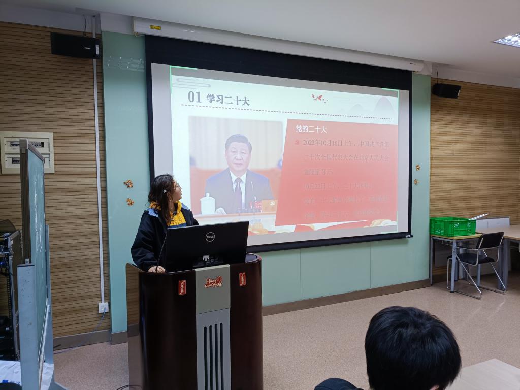 随后,2022级硕士研究生第一团支部书记王兴华作为团支书代表,以本支部此前开展的“主题团日周周讲”活动为切入点,在会上分享党的二十大精神学习体会,主要从二十大的五个要点回顾、二十大报告的十五点这两个角度为与会的书记送上了一份“学习盛宴”。