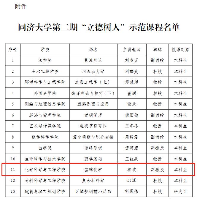 日前,学校发文《关于公布永利集团第二期“立德树人”示范课程名单的通知》,文件显示,我院相波老师主讲的《基础化学》入选其中,热烈祝贺!