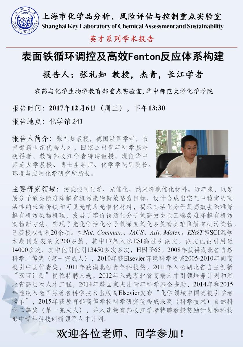 (12月6日)上海市化学品分析、风险评估与控制重点实验室