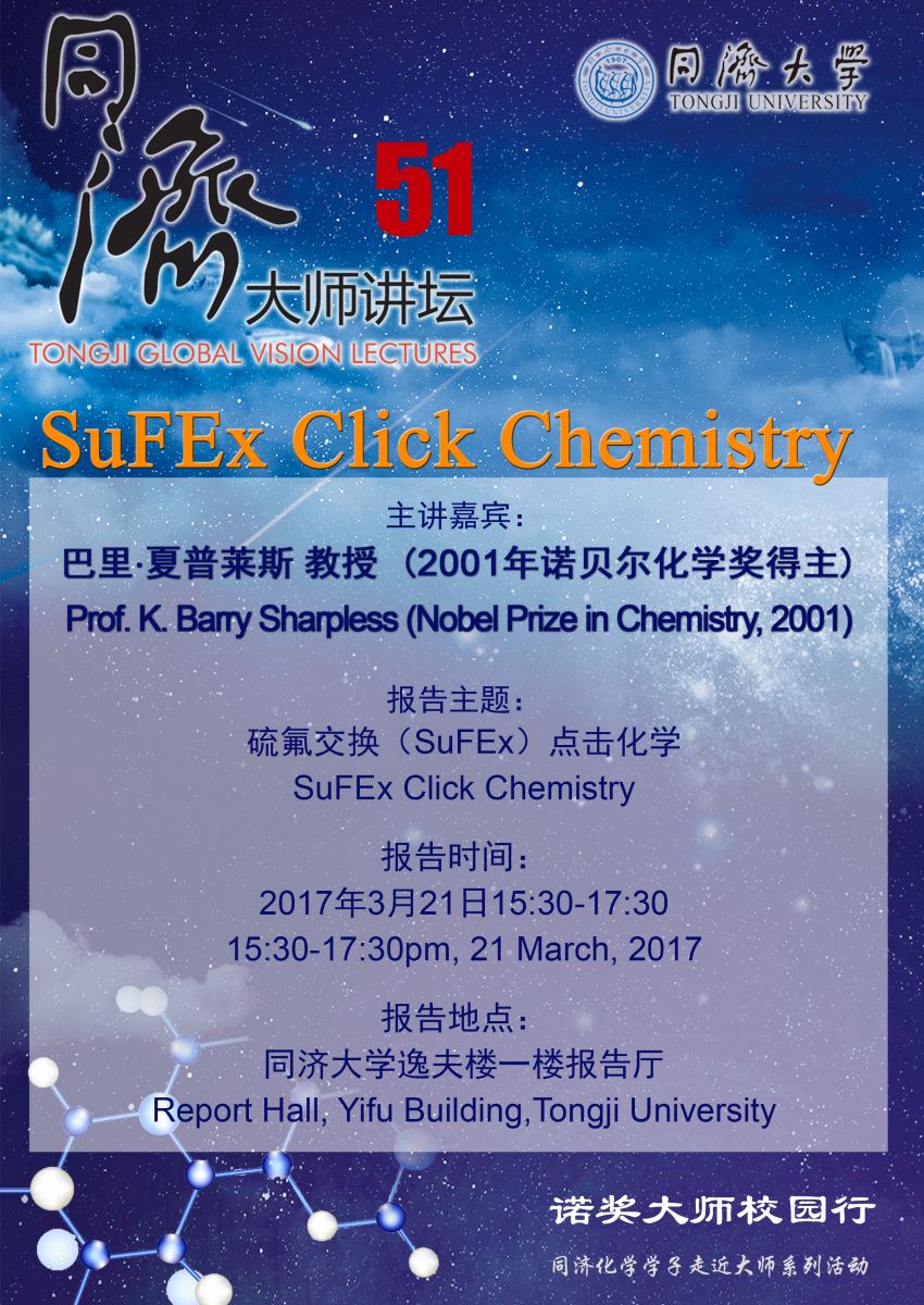 点击化学(Click chemistry)是由夏普莱斯教授在2001年引入的一个合成概念,其特点是反应立体选择性好,产率高效,副反应少,反应迅速完成,尤其是含水体系中生物分子的衍生化,可用于研发医学诊断试剂和新药开发的新型生化标记物,被认为是一项非常理想的技术,已经被广泛应用于生物、药物和材料等领域。