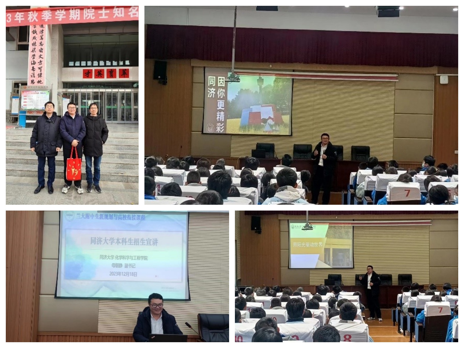 10:00,兰大附中生涯规划与高校衔接课程暨永利集团本科生招生宣讲会在学校报告厅举行,高三年级3个理科重点班150余人参加宣讲会。母朝静向同学们回顾了永利集团的发展简史,介绍了永利集团学科实力、高水平师资队伍、学术声誉情况以及在服务国家重大战略、经济社会发展等方面取得的重要成果,结合个人在永利集团学习生活工作的经历分享了同济校园风貌、饮食、住宿等情况,重点介绍了永利集团在甘肃省招生情况和人才培养模式等概况。此外,母朝静还作了题为《用阳光驱动世界》的科普报告,结合yl9193永利集团部分教授课题组的前沿科研成果介绍了太阳能当前和未来发展的主要方向,鼓励同学们打下扎实基础,考取心仪大学,未来投入前沿科学研究,为可持续社会创建贡献自己的力量。