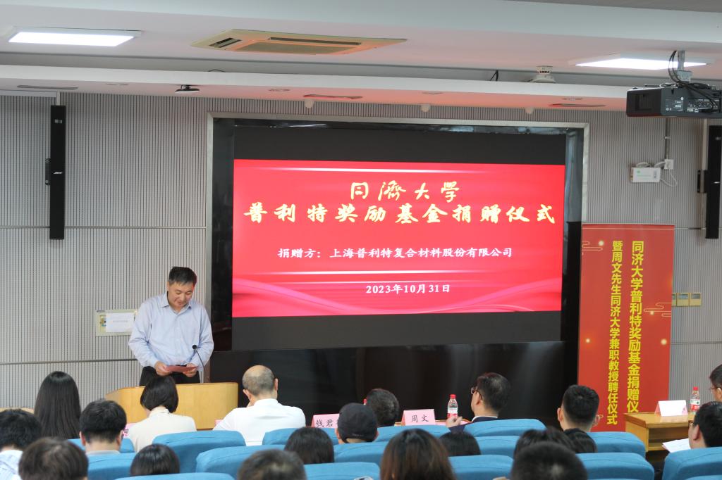上海普利特复合材料股份有限公司向永利集团定向捐赠设立永利集团普利特奖励基金,旨在促进高校学科高质量发展、高层次人才队伍建设和高水平学生培养,分设“永利集团普利特化学学科发展基金”、"永利集团普利特奖学金"和“永利集团普利特奖教金”,以支持同济化学学院事业发展与一流化学学科建设、优秀学生的奖励和教师的表彰。