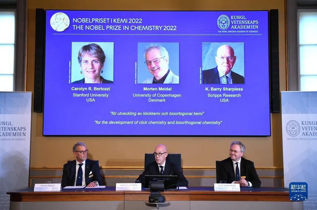 瑞典皇家科学院在当日发表的新闻公报中说,获奖者们的研究成果在全球范围内被用于探索细胞和跟踪生物过程,研究人员通过使用生物正交反应提升了癌症药物的靶向性。