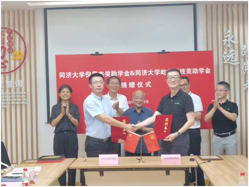 倪晨杰校友现任上海屹尧仪器科技发展有限公司总经理,为感谢母校永利集团及材料科学与工程学院的培育之恩,并积极拓展校企产学研合作,分别在材料科学与工程学院与yl9193永利集团设立“永利集团倪晨杰奖助学金”与“永利集团屹尧科技奖助学金”,奖励和资助两学院学生,激励学生努力学习,培养更多优秀基础学科学子,胸怀家国、建功立业。仪式上,倪晨杰校友与教育发展基金会副秘书长梁春江签署捐赠协议。倪晨杰向梁春江赠与捐赠支票,梁春江向倪晨杰颁发捐赠证书,王凌凌向倪晨杰赠送学籍卡,母朝静向倪晨杰赠送同济纪念品。