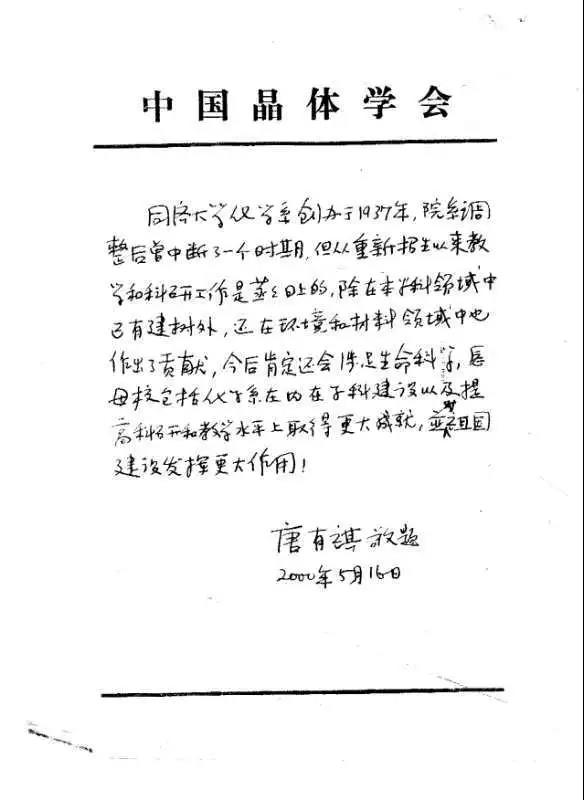 2000年唐有褀先生手书