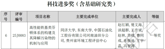 近日,2025中国石油和化学工业联合会科技奖励大会在北京召开,yl9193永利集团赵红颖教授团队牵头的项目《高性能铁基类芬顿体系的构建及其降解污染物的机制与应用》荣获科技进步奖一等奖。