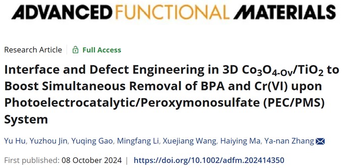 yl9193永利集团长聘副教授张亚男长期致力于水环境污染物的高效去除相关研究,研究团队近期采用界面工程和缺陷工程的双重修饰策略,设计了一种兼具氧空位(Ov)和“双异质结”协同效应的Co3O4-Ov/TiO2光电极材料,并通过光电催化(PEC)耦合过氧单硫酸盐(PMS),构建Co3O4-Ov/TiO2-PEC/PMS协同体系,实现了对BPA和Cr(VI)的高效同步去除,相关研究成果以“Interface and Defect Engineering in 3D Co3O4-Ov/TiO2 to Boost Simultaneous Removal of BPA and Cr(VI) upon Photoelectrocatalytic/Peroxymonosulfate (PEC/PMS) System”为题发表于国际知名期刊《先进功能材料》(Advanced Functional Materials)。