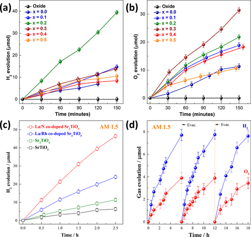 我院徐晓翔教授课题组长期致力于发展高效、经济、稳定的可见光响应的光催化材料。特别是对于钙钛矿材料有着较为深刻的研究。近日,该课题组报道了一种新型二维钙钛矿材料La/N掺杂的Sr2TiO4在可见光激发下实现了分解水制氢和制氧反应,并且在模拟自然光条件下实现了全分解水。理论计算表明层状Sr2TiO4材料具有各向异性,电子被限制在TiO6八面体层,而层间的电荷传输被禁止了。因此每层钙钛矿可以作为独立的单元参与光催化反应,减弱了电子空穴的符合几率。但其具有较宽的带隙结构,限制了该材料对于太阳光的利用。在此结构中引入La和N元素可以有效的增加其可见光响应(光吸收边达到650纳米)。日前,该研究成果以“Activating Layered Perovskite Compound Sr2TiO4via La/N Codoping for Visible Light Photocatalytic Water Splitting”为题发表于国际知名期刊ACS catalysis上(DOI: 10.1021/acscatal.8b00369),该刊2017年的影响因子为10.6。博士生孙小琴为第一作者,徐晓翔教授及合作者弭永利教授、美国特拉华大学焦峰教授为共同通讯作者。