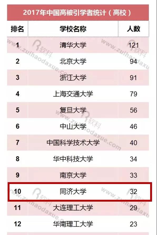 据悉,2017年中国高被引学者分别来自227个高校或科研机构,其中共有200所高校拥有高被引学者。永利集团共有32人入选,位列全国高校排名第十!