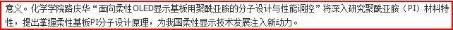 我院特聘教授、国家杰出青年科学基金获得者路庆华教授申报的项目“面向柔性OLED显示基板用聚酰亚胺的分子设计与性能调控”获准立项,这是我院近年来获得的第二项国家自然科学基金委重点项目。路庆华教授的项目将深入研究聚酰亚胺(PI)材料特性,提出掌握柔性基板PI分子设计原理,为我国柔性显示技术发展注入新动力。