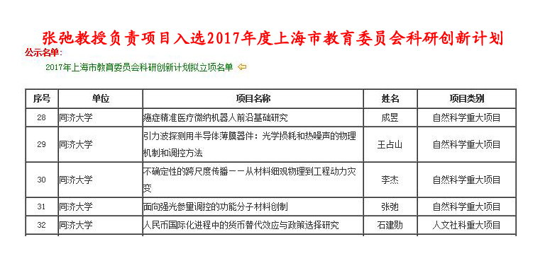 日前,上海市教育委员会在官网上发布《2017年度上海市教育委员会科研创新计划拟入选名单网上公示》,根据《上海市教育委员会关于组织申报2017年度上海市教育委员会科研创新计划的通知》(沪教委科[2017]25号),2017年6月2日至2017年6月9日,将2017年度上海市教育委员会科研创新计划拟入选名单进行网上公示。