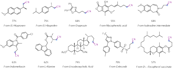 这种方法还可以实现醛去氧氰基化的反应,对多种复杂天然产物和药物中间体衍生物进行后修饰,还可以应用于快速合成药物分子的关键中间体,展现出了广阔的应用潜力。
