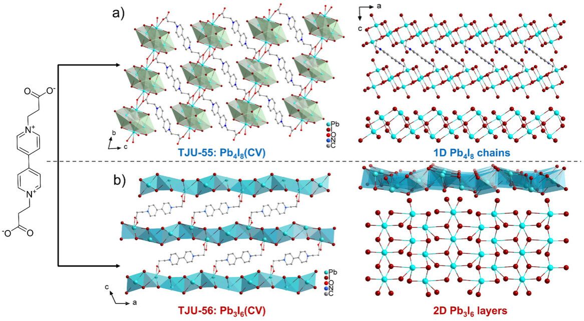 人工光合作用,即利用太阳能将CO2转化为高附加值的化学燃料,是同时解决能源危机与温室效应的理想方案之一。然而,在太阳光谱中能量较低但占比超过50%的近红外光,却因难以激发催化剂产生足够能量的载流子,导致无法驱动需要多电子转移的C–C偶联反应,长期以来被视为“无效能源”。在众多候选光催化剂中,杂化卤化铅材料因其优异的光电性质而备受关注。然而,传统的三维卤化铅材料(如钙钛矿)面临着稳定性差的致命弱点;而结构相对稳定的低维(如一维、二维)卤化铅材料,又常因激子束缚能高、光吸收范围窄等问题,导致光催化效率受限。因此,如何在不牺牲稳定性的前提下,拓宽光响应范围并促进高效的电荷分离与C–C偶联,是该领域面临的重大挑战。