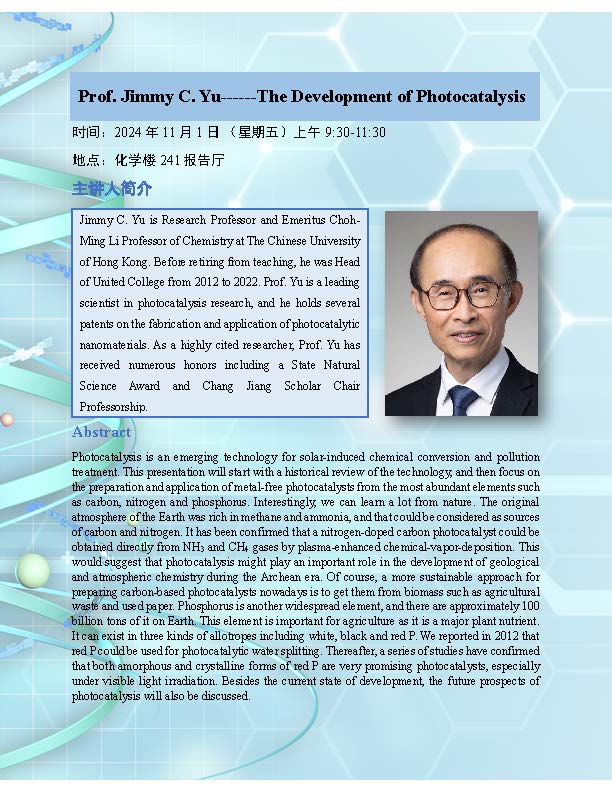 (11月1日)Prof. Jimmy C. Yu:The Development of Photocatalysis