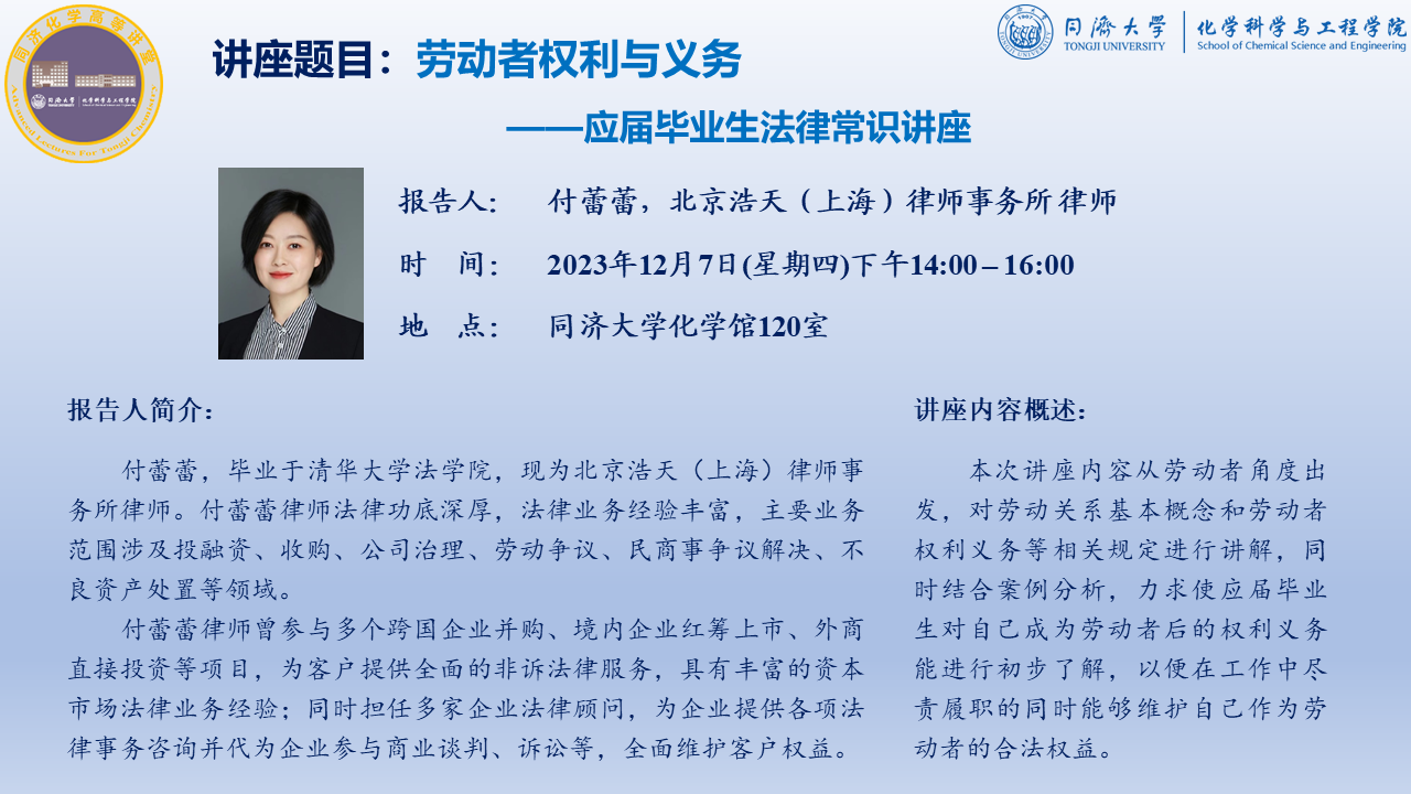 (12月7日)付蕾蕾 律师:劳动者权利与义务 —— 应届毕业生法律常识讲座