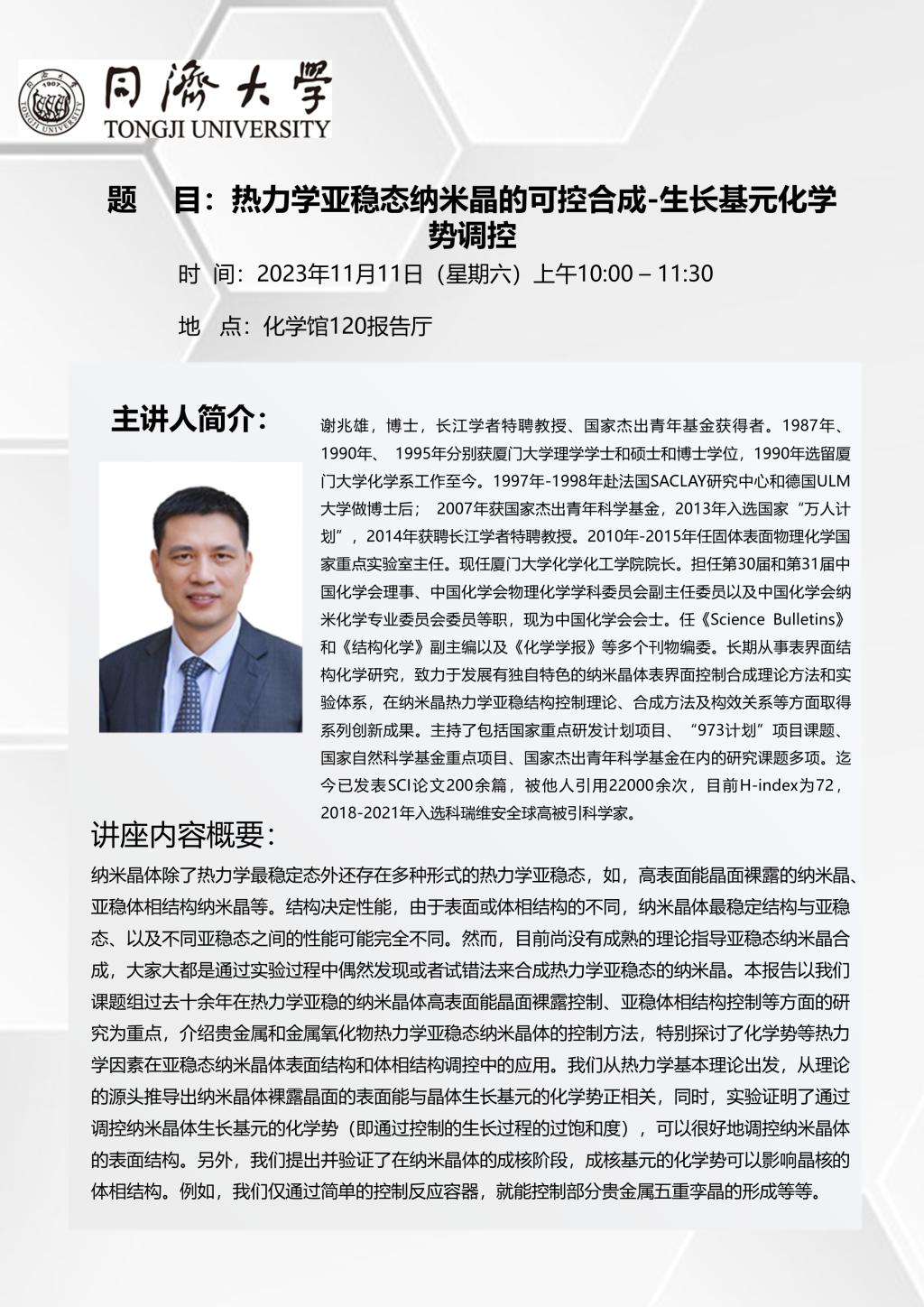 主讲人:谢兆雄 教授(厦门大学化学化工学院院长,教育部特聘教授、国家杰青)