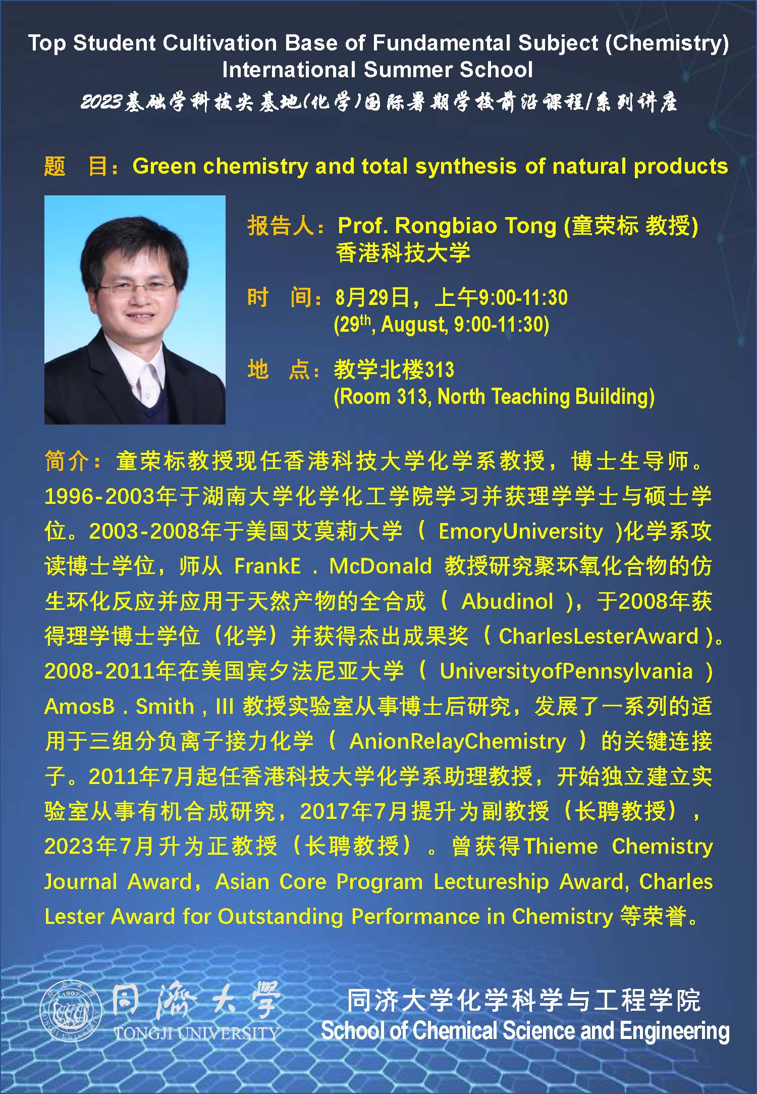(8月29日)童荣标教授:Green chemistry and total synthesis of natural products