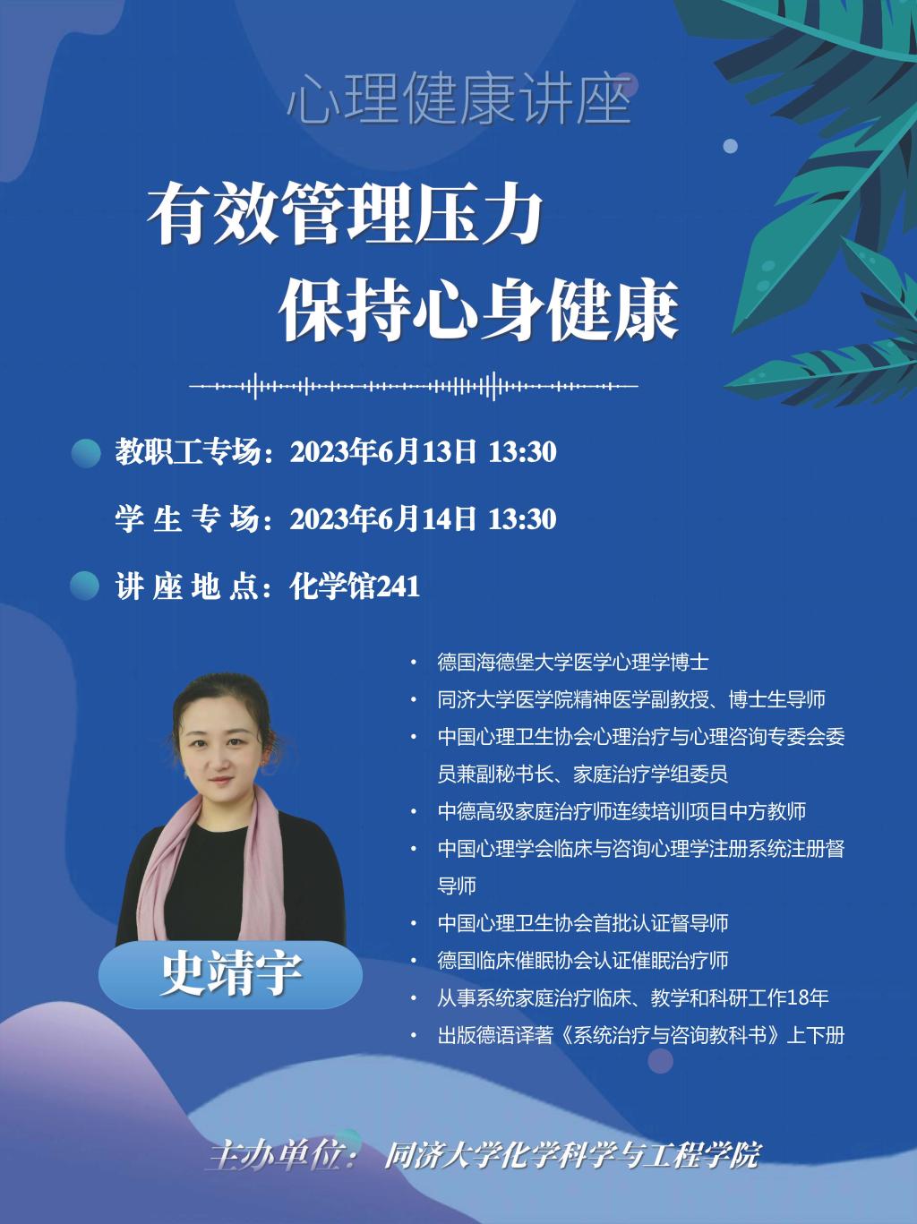 (6月13日、6月14日)心理健康讲座:有效管理压力,保持心身健康