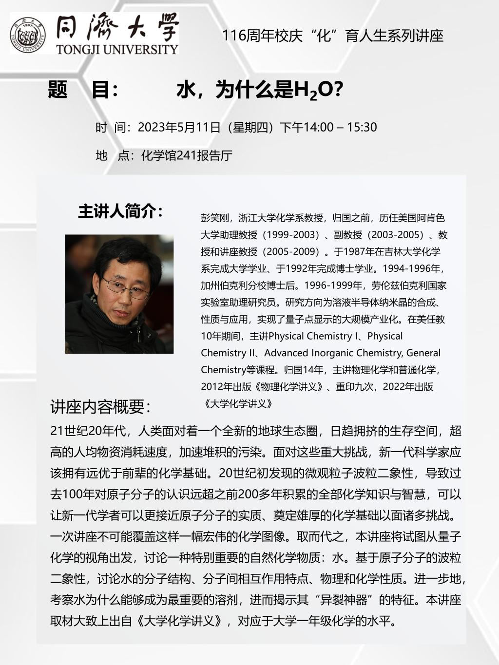 主讲人:彭笑刚 教授(浙江大学化学系,国际顶尖纳米材料学家)