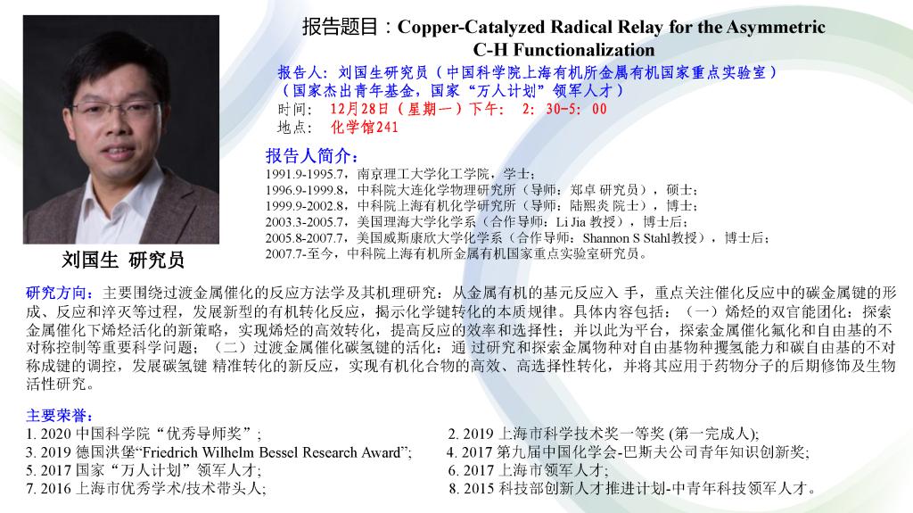 刘国生研究员:Copper-Catalyzed Radical Relay for the Asymmetric C-H Functionalization