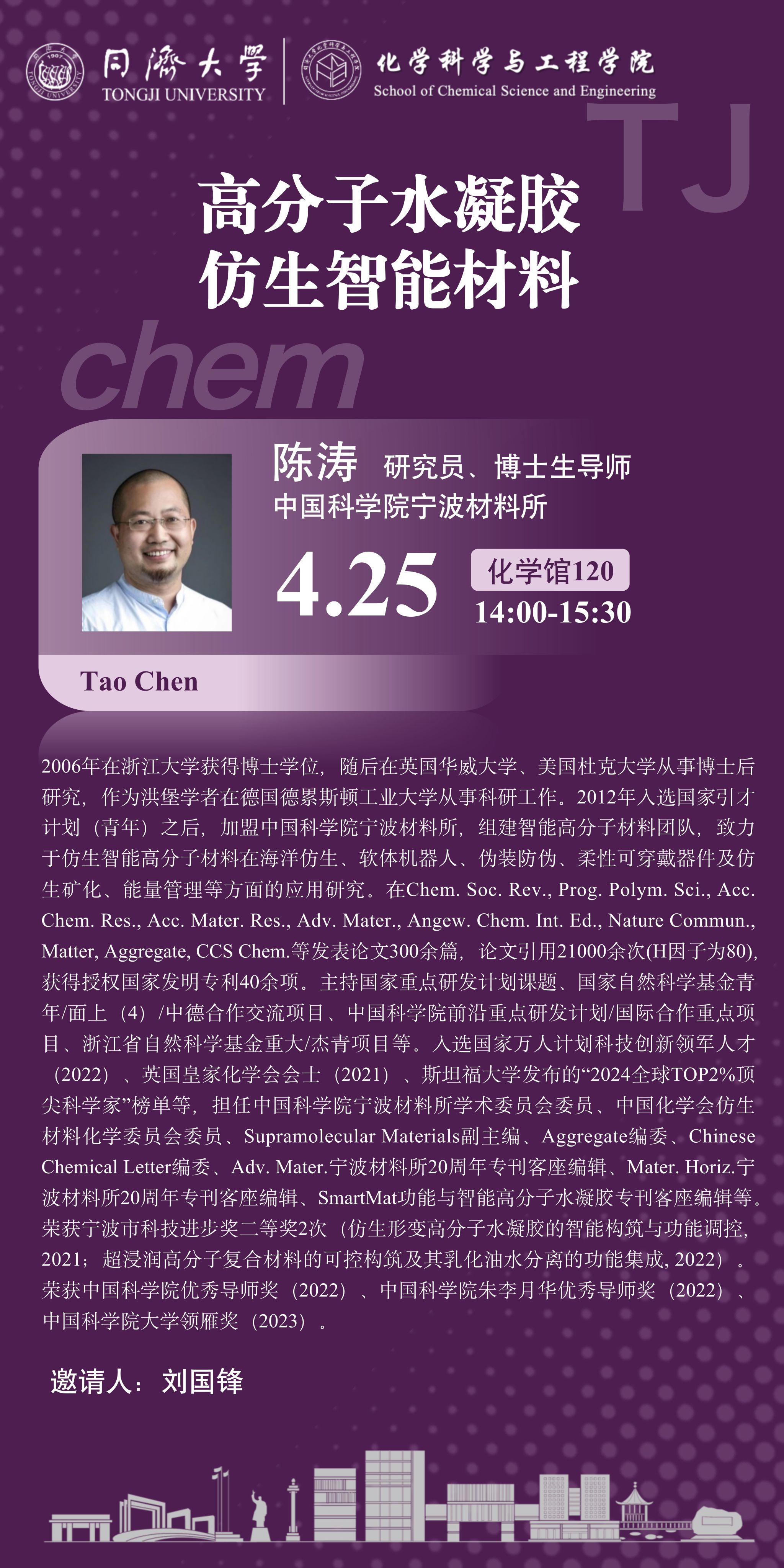 (4月25日)陈涛研究员:高分子水凝胶仿生智能材料