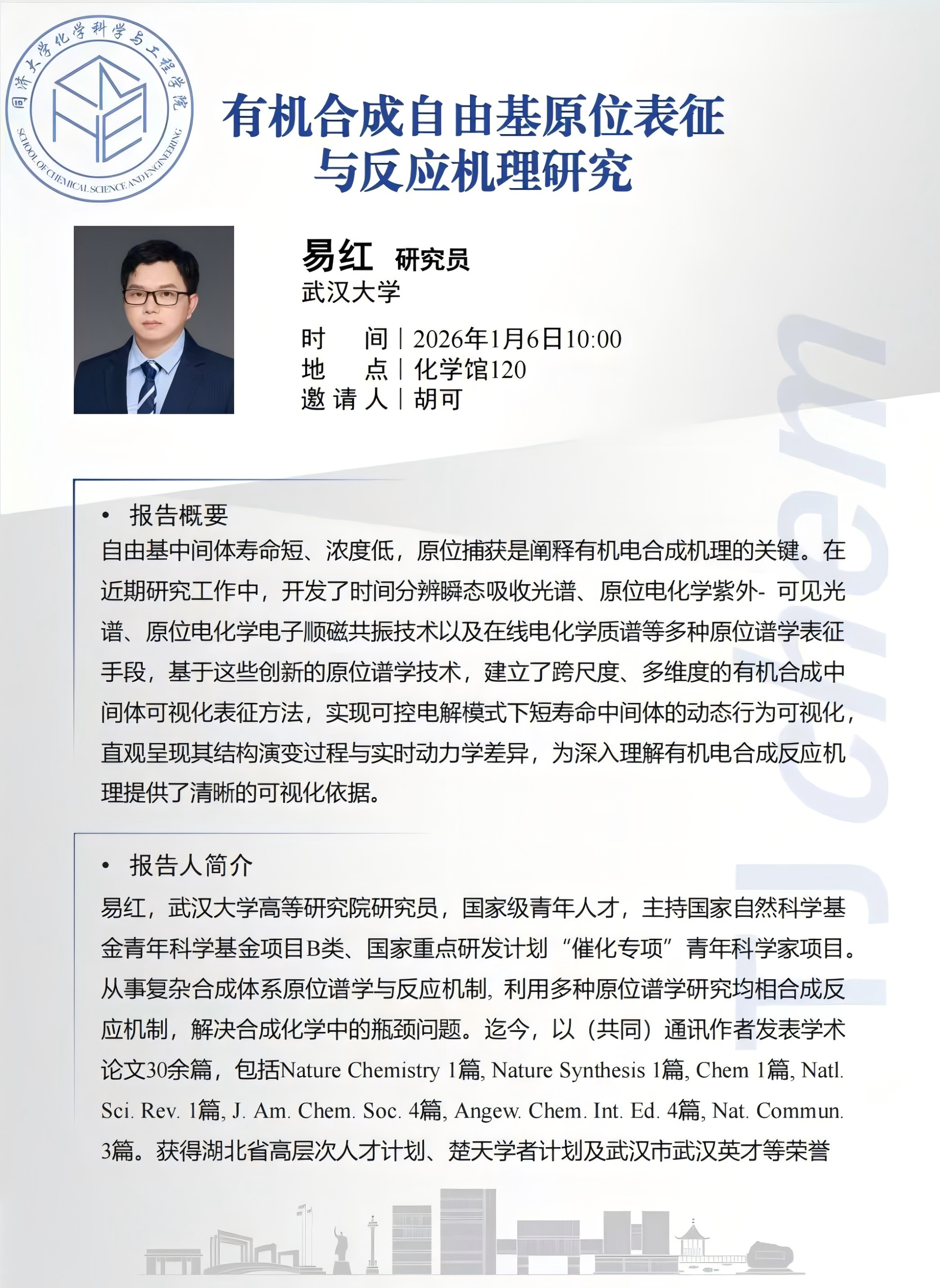 (1月6日)有机合成自由基原位表征与反应机理研究