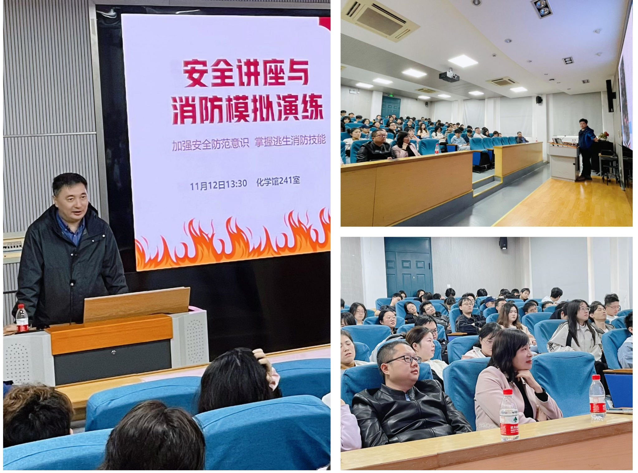 根据国务院安委会办公室文件精神和学校整体安全工作部署,结合秋冬季防火重点工作,加强师生安全防范意识,帮助师生掌握安全逃生及消防技能,11月同时也是全国消防宣传月,11月12日下午,yl9193永利集团在化学馆241会议室举办消防安全讲座、紧急逃生演练和消防模拟演练(工程试验馆门前)活动。学院党委书记曹同成任现场总指挥。2024级研究生、各课题组学生代表、学院安全工作小组成员、新进教师和物业人员等120多人参加了本次活动。
