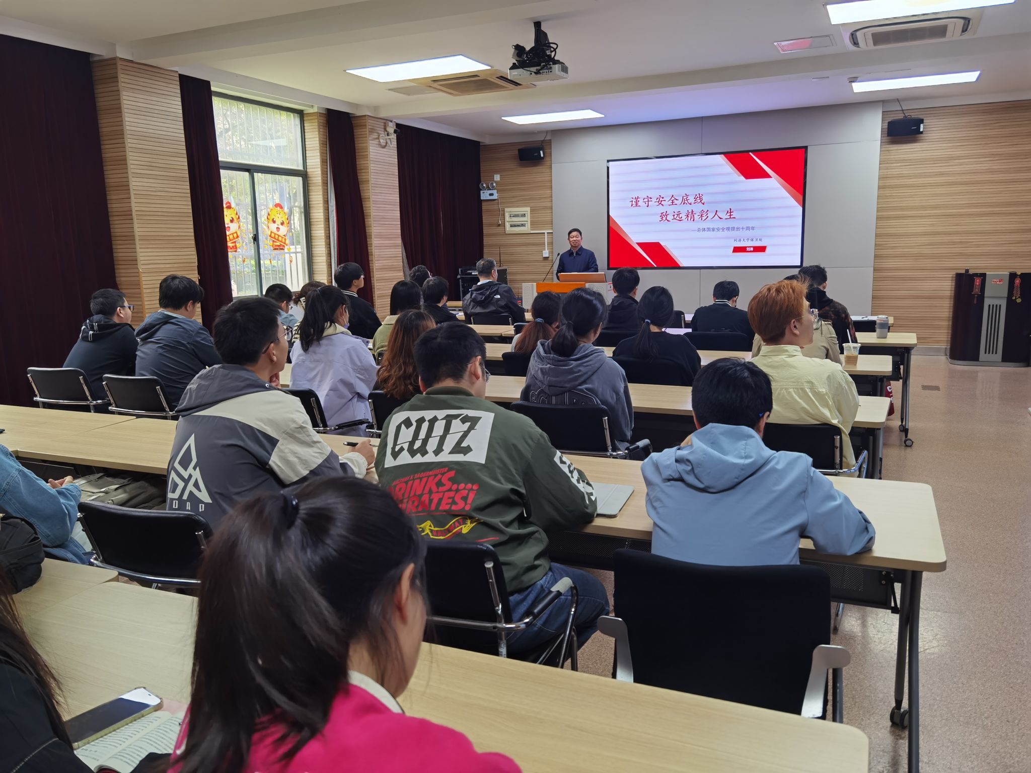 刘涛以《谨守安全底线 致远精彩人生》为题作安全教育专题讲座。他结合大量生活案例、身边事例和视频片段,从国家安全、消防安全、人身安全、财产安全、心理健康安全、网络安全等方面向学员们介绍了总体国家安全观及有关内容内涵。他希望当代青年学生,既要有总体国家安全观,又要有自我安全观,明者防祸于未萌,智者图患于将来,守住安全底线,把小我融入大我,致远精彩人生,成为堪当重任的中国式现代化的接班人和建设者。