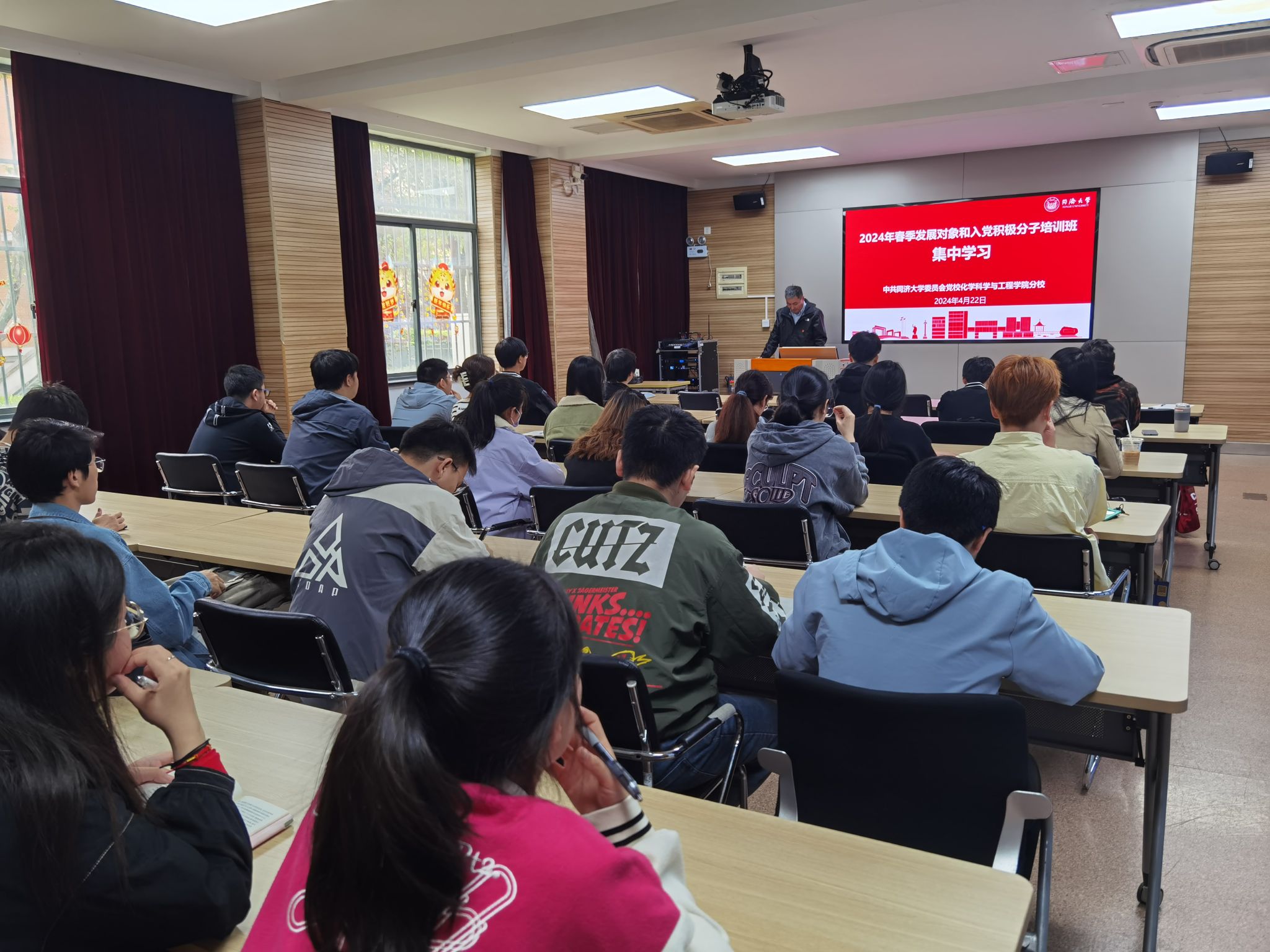 422日中午,yl9193永利集团分党校举办春季学期培训班集中学习,学院党委书记曹同成出席并讲话,保卫处副处长刘涛应邀作安全教育专题讲座,参加本期培训班的发展对象、入党积极分子等40余人参加学习。党委副书记母朝静主持会议。