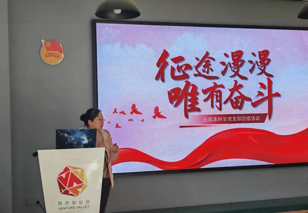 本科生党支部书记、学工办主任丁奇老师首先致辞。她总结了本学期以来的党支部活动情况,肯定了这学期的党支部系列活动的成果,并结合党支部目前情况对下学期的党员发展计划做了具体的介绍。她着重提到了本科生入党积极分子考察的时间、程序和应提交的材料以及培养情况,鼓励同学提高参加活动、提交思想汇报的主动性积极性,同时也期望同学们可以在活动中发现不足,提出宝贵的反馈意见。